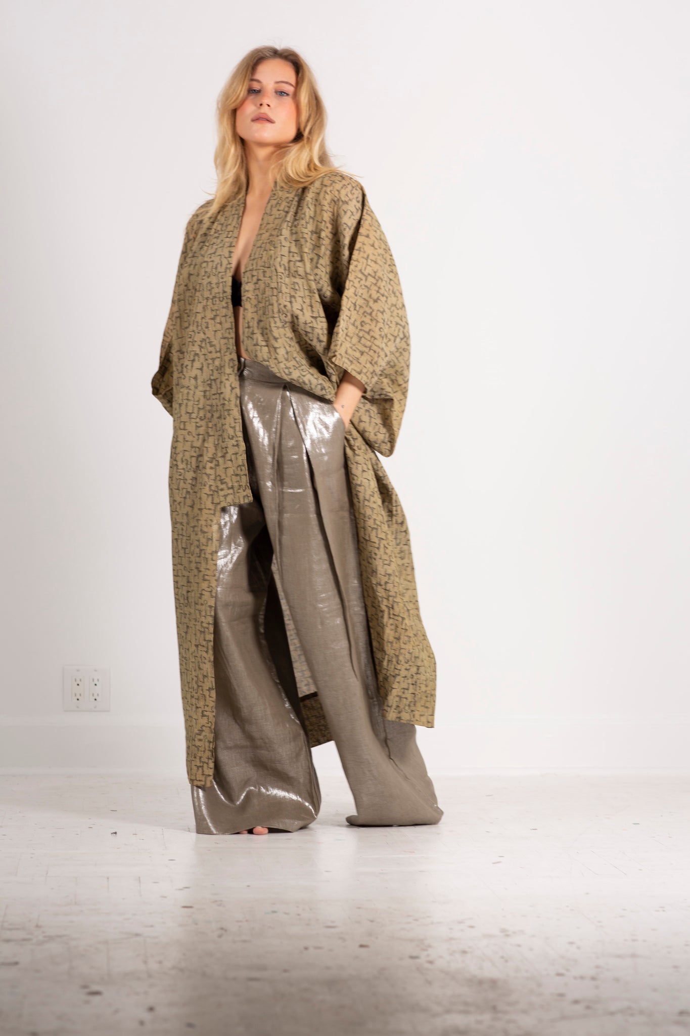 Choose from four metallic linen fabrics for lightweight wide-legged summer pants.